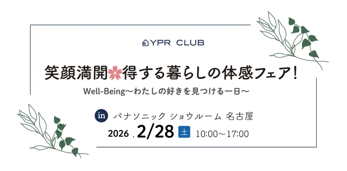 2026年2月28日(土)にパナソニックショウルーム名古屋にて開催される、株式会社山西主催「笑顔満開 得する暮らしの体感フェア!」に出展いたします。