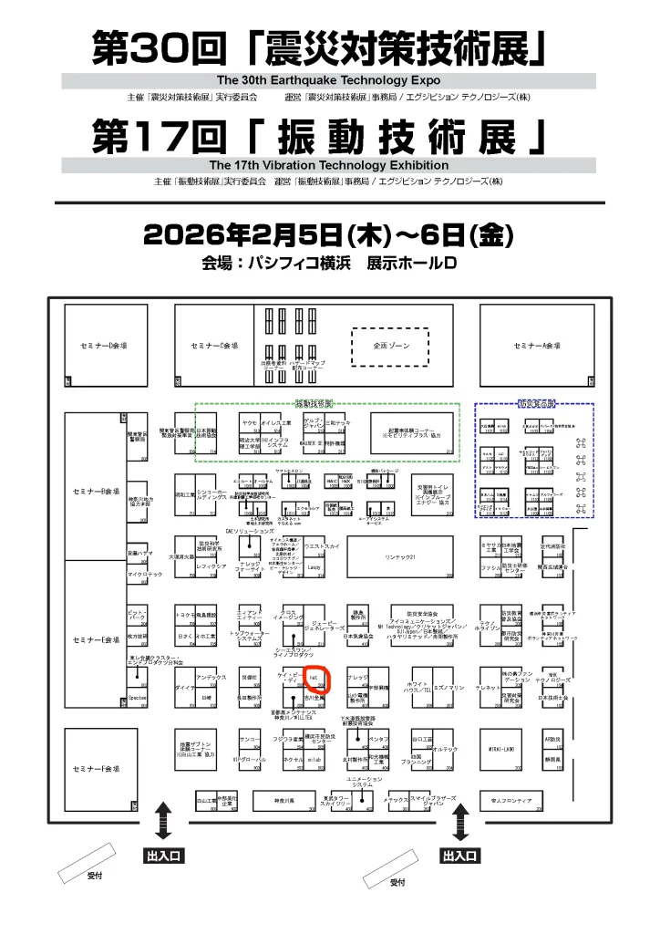 2026年2月5日(木)〜6日(金)にパシフィコ横浜にて開催される「震災対策技術展」に出展いたします。