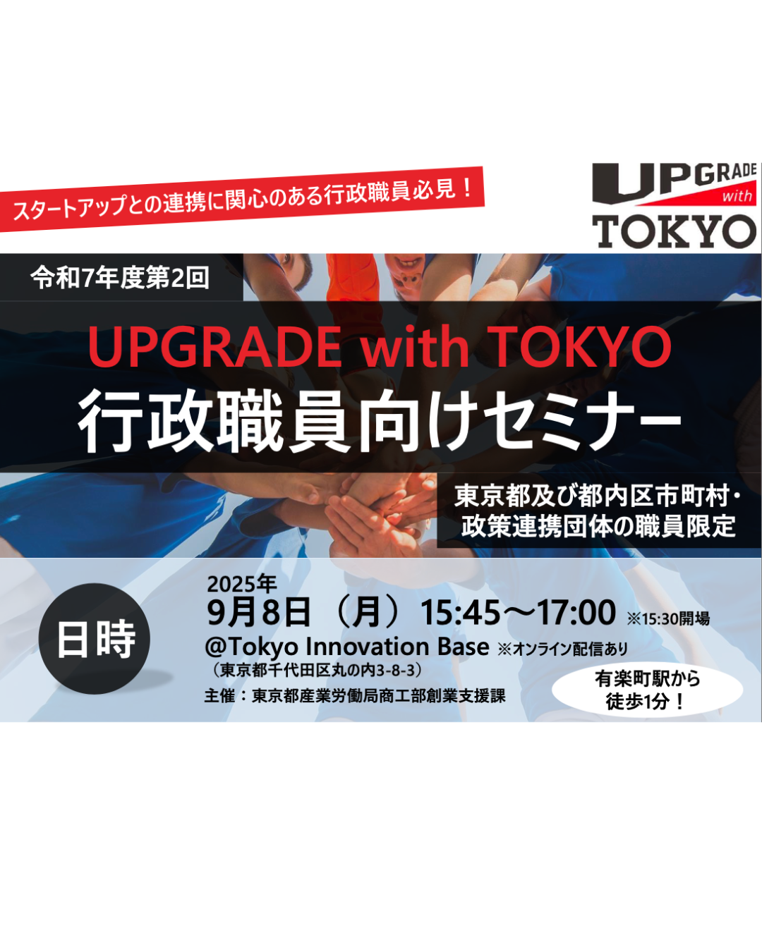 nat株式会社(代表取締役:劉 栄駿)は、2025年9月8日(月)に東京都千代田区・Tokyo Innovation Base にて開催される 「UPGRADE with TOKYO 行政職員向けセミナー」 に登壇いたします。