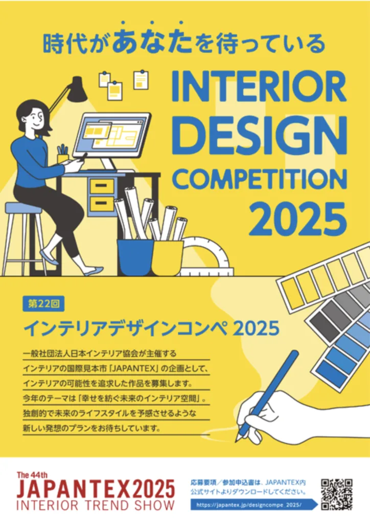 セミナーのあとは、町田校長が審査員を務める 「インテリアデザインコンペ表彰式」 が同会場にて行われます。インテリアファブリックスの新しいアイデアが詰まったコンペティションで、次世代を担うデザイナーたちの発想に触れる貴重な機会です。