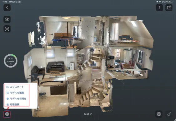 ・オフライン時の主要機能網羅: スキャン(ノーマル/間取り)、モデルの閲覧・編集、計測、フォルダ管理などが通信なしで利用可能です。